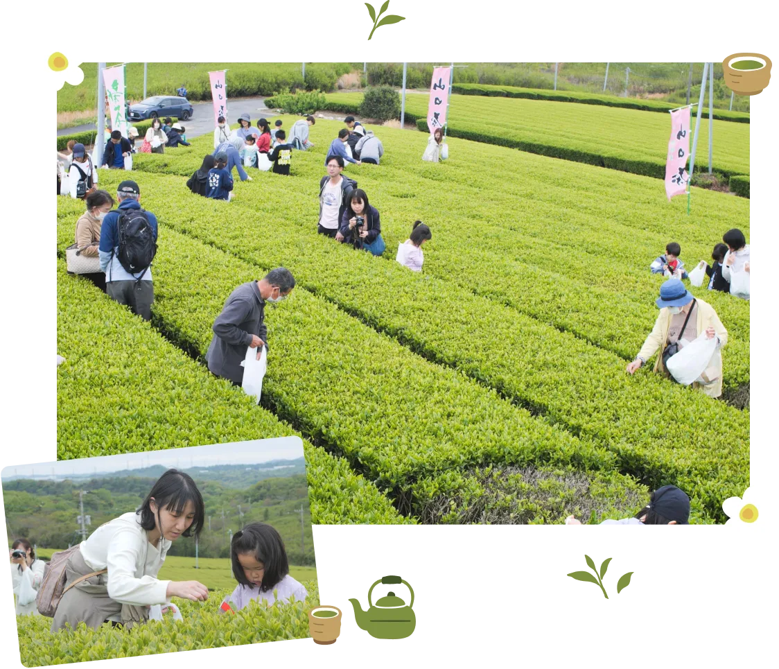 また、西日本最大級の敷地面積を誇る「藤河内茶園」の見学、茶摘み体験、製茶体験など家族で楽しめるイベント満載。