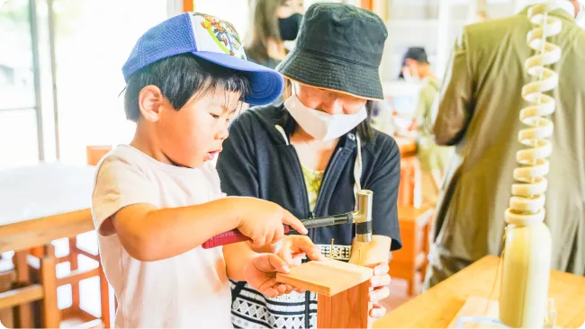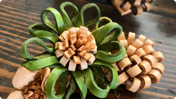 ⽊と⽪でつくるお家のワークショップ、レザーグッズ販売