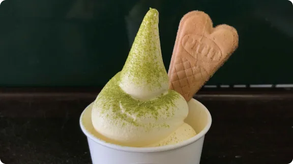 抹茶ソフトクリーム、⽇本茶ラテ、わらび餅ラテ