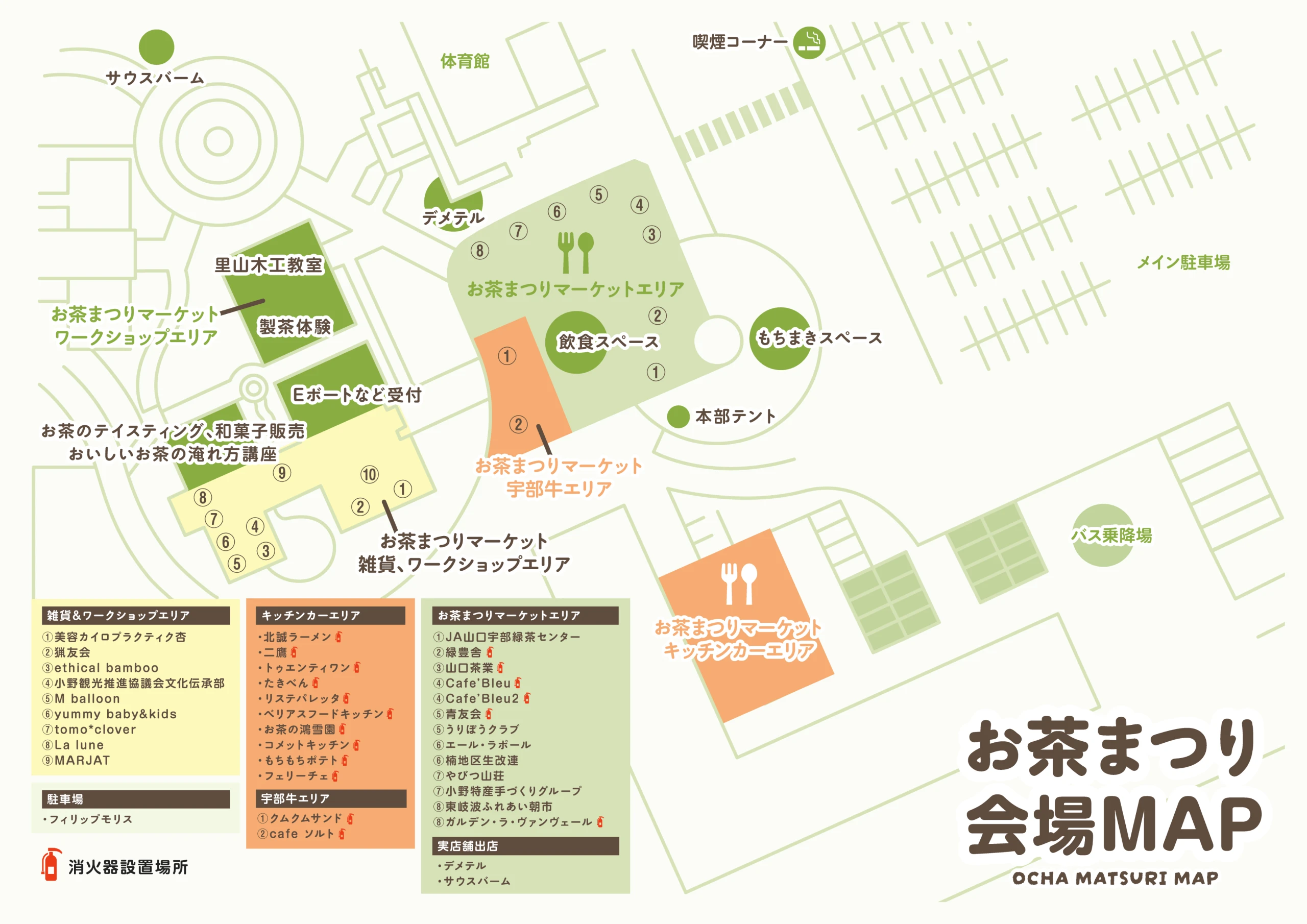 会場となるアクトビレッジおのには地元飲食店やフードトラックが集合し、お茶にちなんだメニューをお楽しみいただけます。